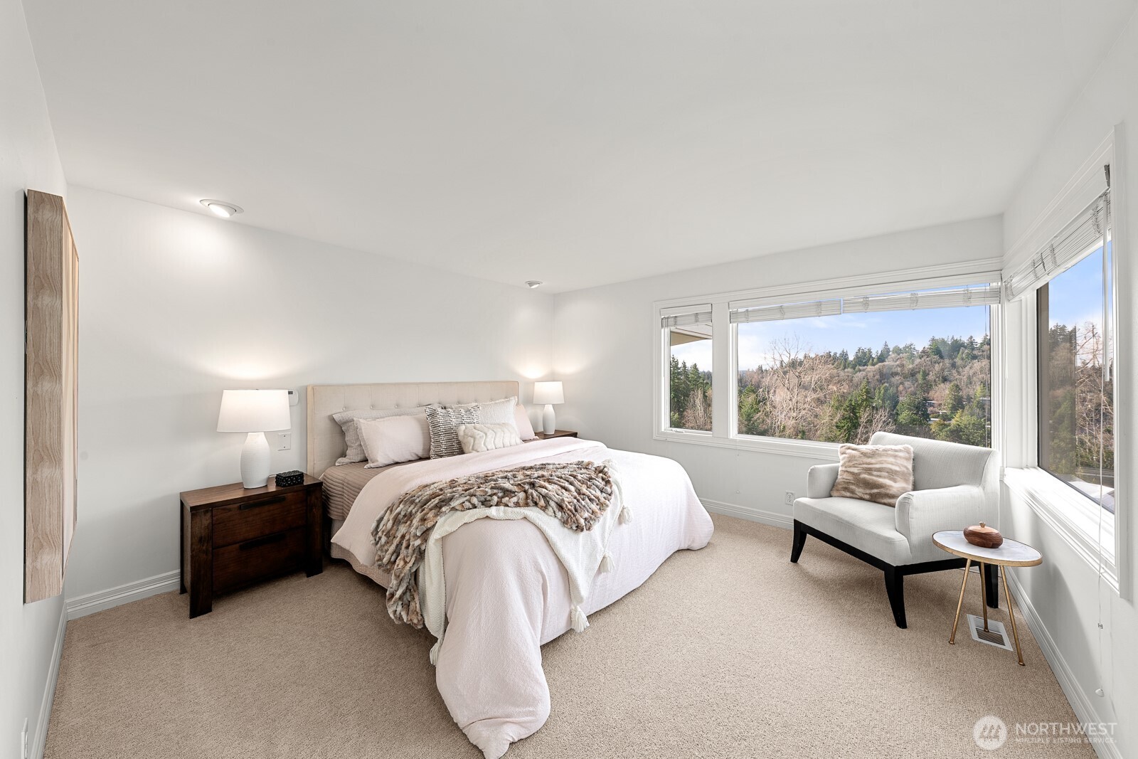 Ideally located on the coveted north end of Mercer Island, this exceptional light-filled view townhome offers an elegant blend of style, comfort, and location. Soaring ceilings, an open-concept design, and expansive walls of windows frame breathtaking views. The spacious gourmet kitchen is ideal for both entertaining and everyday living. A serene primary suite with an attached sitting room provides a private retreat with beautiful vistas. Move-in ready with recent updates including a newer roof, new carpet, and epoxy-finished floors in the attached two-car garage. Just minutes to future Light Rail, parks, restaurants, shopping, top-rated schools, and I-90. Welcome Home!