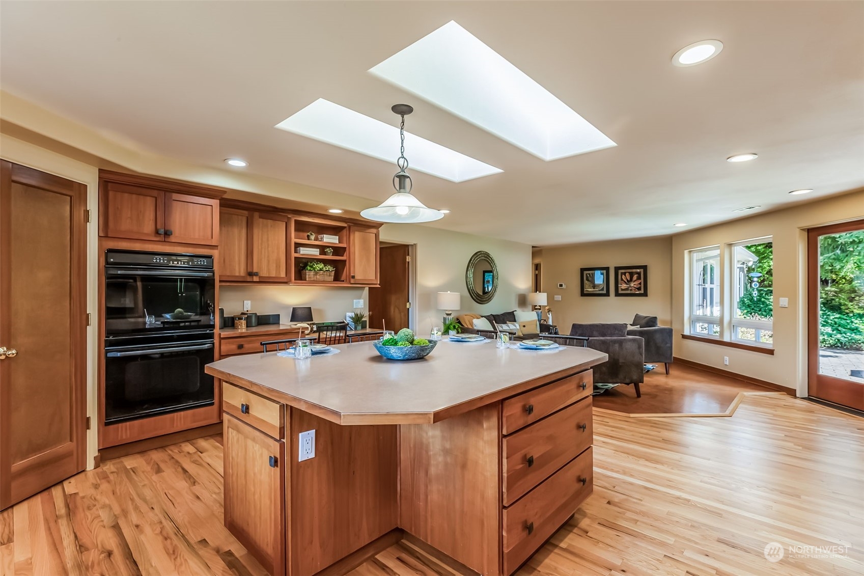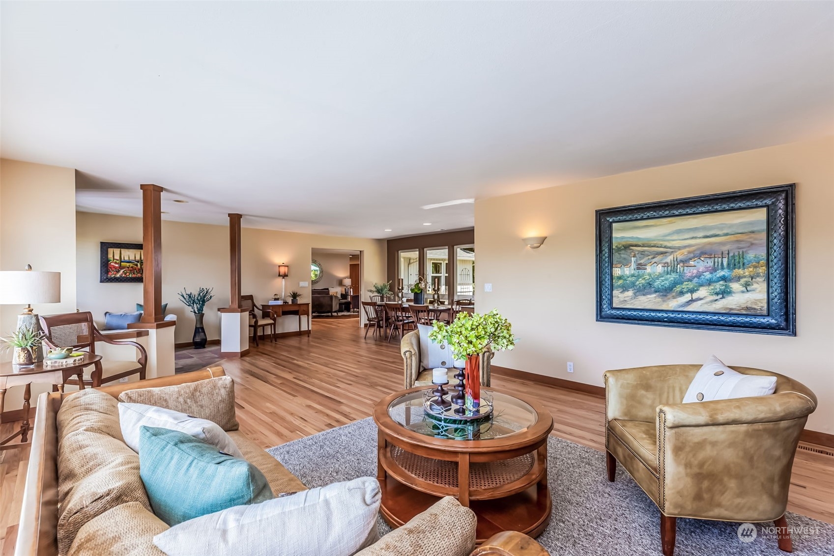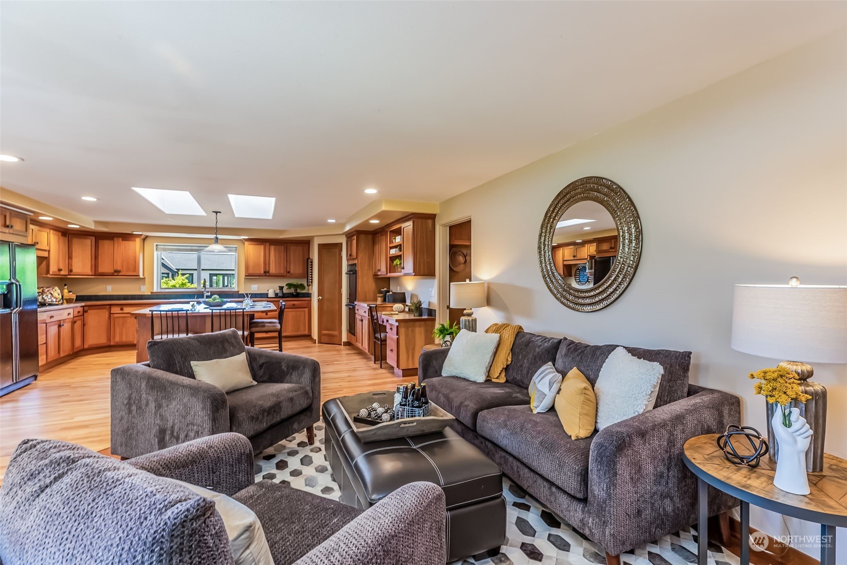 Thoughtfully maintained 1-story, 2,530 sq. ft. +/- home with a generous open floor plan. Step into the large family & dining space with tons of natural light pouring in. Spacious kitchen that adjoins to the living room that allows access to the backyard patio, providing a great backdrop for relaxing in the spring sun. Immense office space & utility room that allows you to work from home or spend your free time on hobbies & crafts. Primary BD/BA w/ custom walk-in closet. 3 add'l bedrooms, 2 car garage. Refinished hardwood floors throughout. Large 17,000+/- sq. ft. lot. Commuting is a breeze, located around the block from Island Crest Wy, schools, and a convenient drive to I-90. A home with a sought after floorplan that can soon be your own.